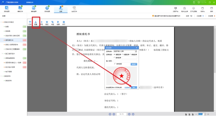 點擊工具上方【簽章】,必須要簽章的章節會有紅色未簽提示,如下圖: