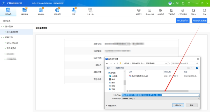 廣聯達投標【新建】后,【一鍵導出招標文件】 |