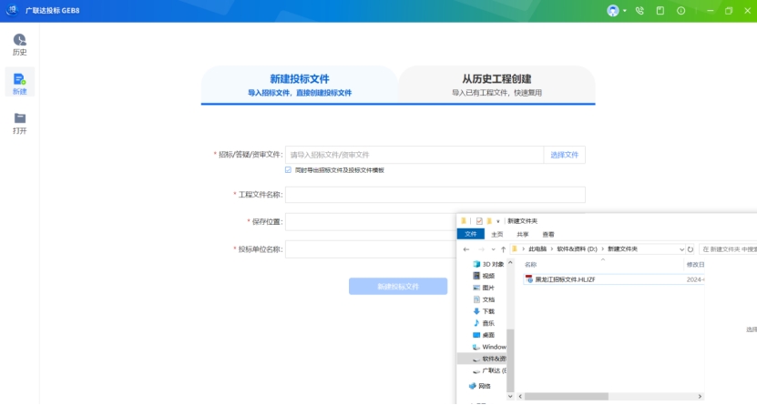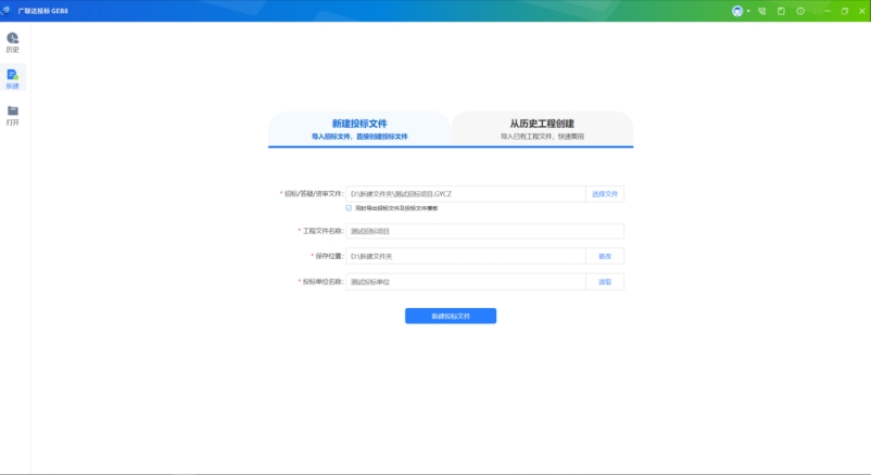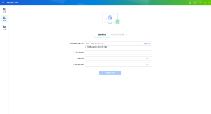 功能描述:投標單位項目經辦人可使用新建/打開功能,新建/打開電子投標文件。