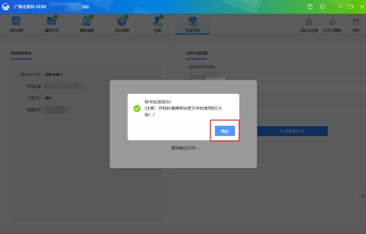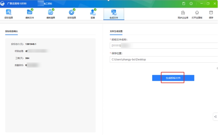 廣聯達投標 —【生成文件】 |
