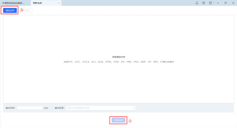 選擇【PDF合并】,跳轉(zhuǎn)至PDF合并頁面,點(diǎn)擊【添加文件】,選擇您需要合并的文檔,輸入輸出名稱,選擇輸出目錄,點(diǎn)擊【開始合并】,合并成功后會彈出友好提示。