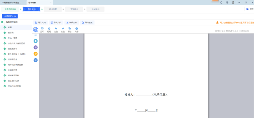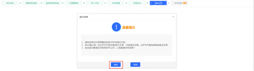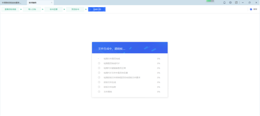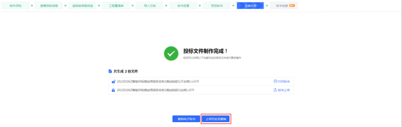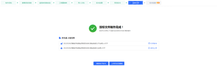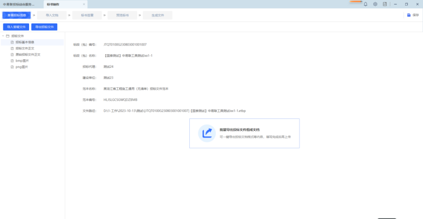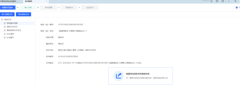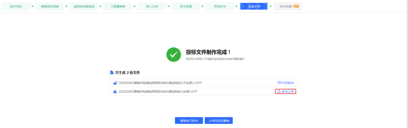 點(diǎn)擊“生成文件”節(jié)點(diǎn),點(diǎn)擊【生成投標(biāo)文件】。