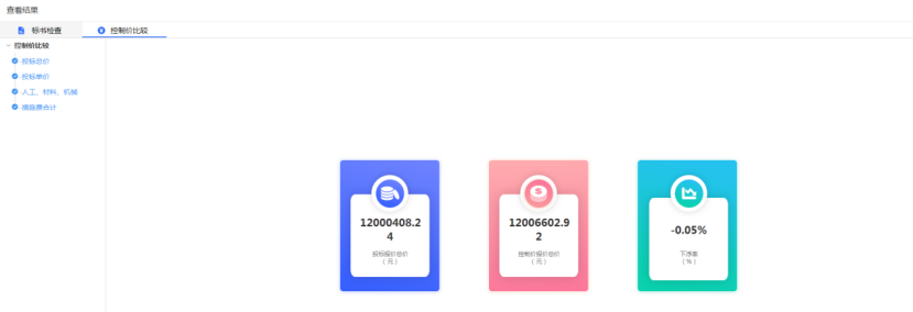 有控制價(jià)文件/控制價(jià)清單參與清標(biāo)時(shí),清標(biāo)結(jié)果會有“控制價(jià)比較”頁面。