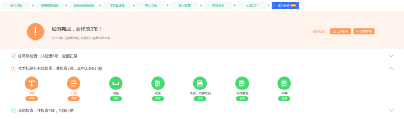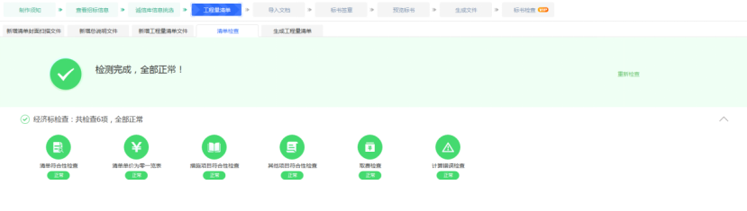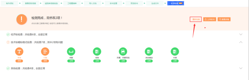 點(diǎn)擊【重新檢查】,重新進(jìn)行標(biāo)書檢查。