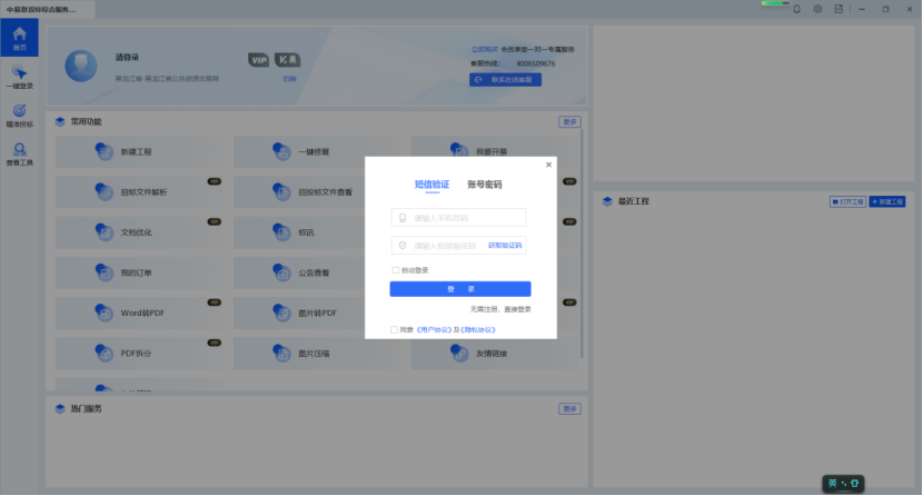 點(diǎn)擊工具首頁左上角【請登錄】按鈕,彈出登錄框。