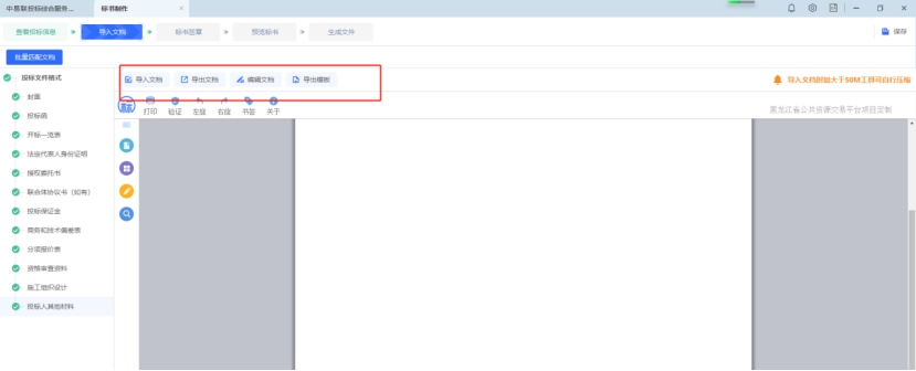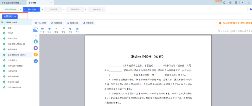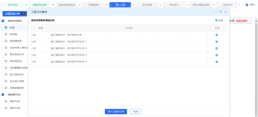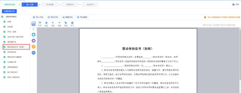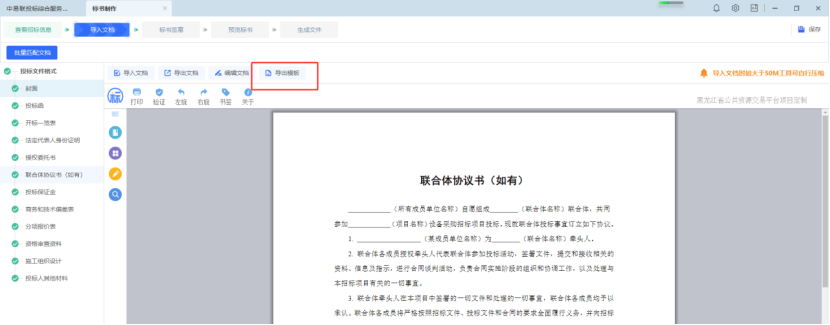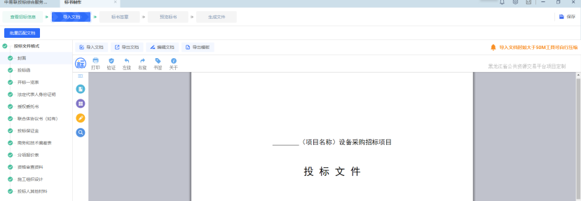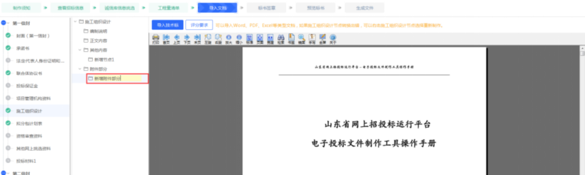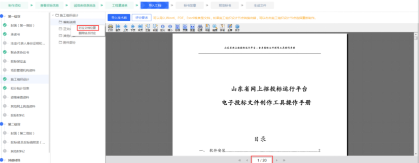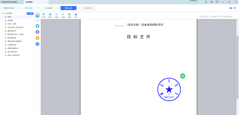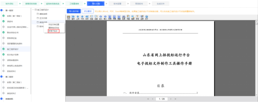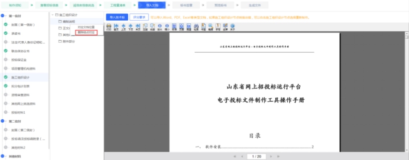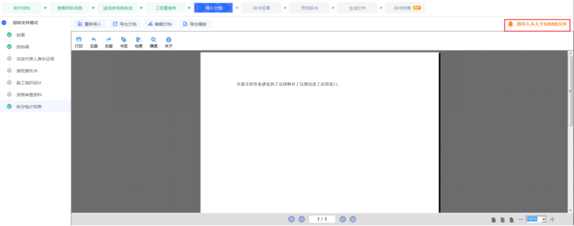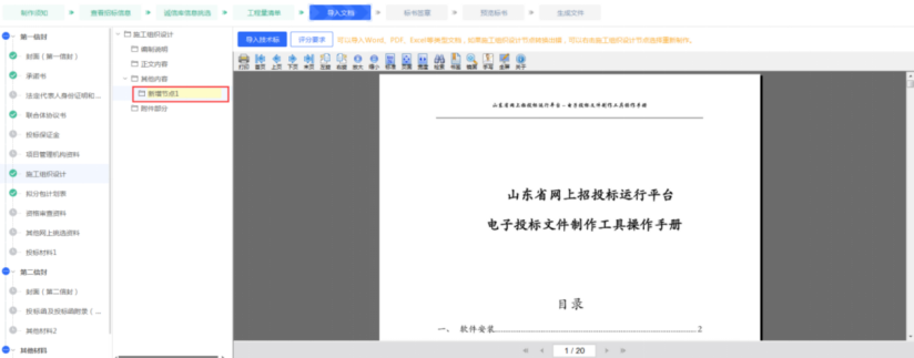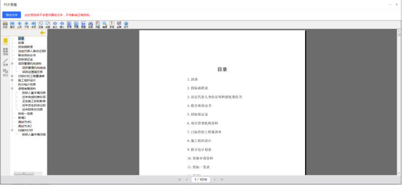 所有節(jié)點(diǎn)完成轉(zhuǎn)換、簽章后,點(diǎn)擊“預(yù)覽標(biāo)書”節(jié)點(diǎn),點(diǎn)擊左側(cè)列表預(yù)覽各節(jié)點(diǎn)內(nèi)容。