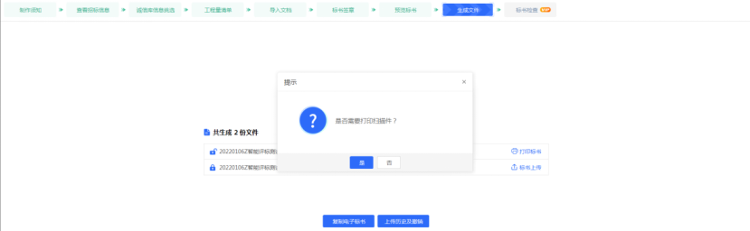 點(diǎn)擊非加密投標(biāo)文件后【打印標(biāo)書】,是否打印掃描件選擇【是】則打印,選擇【否】則不打印,查看打印標(biāo)書。