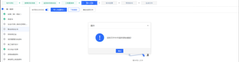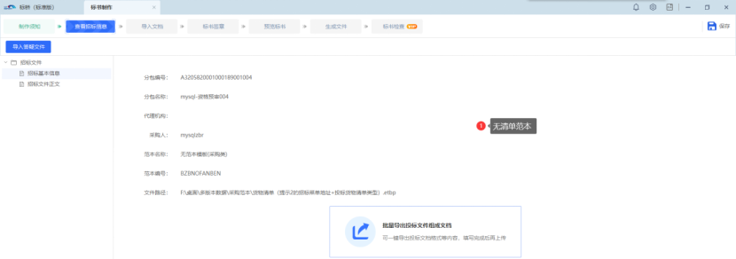 當(dāng)該節(jié)點(diǎn)在招標(biāo)制作時(shí),未設(shè)置模板,【導(dǎo)出模板】按鈕隱藏
