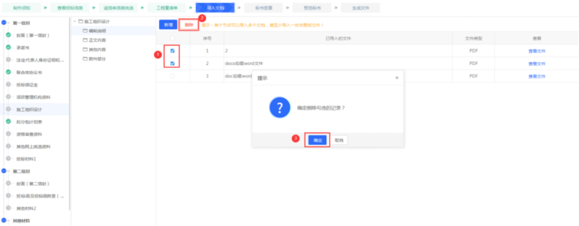 勾選需要刪除的文檔,點(diǎn)擊【刪除】按鈕,點(diǎn)擊【確定】,刪除選擇的文檔。