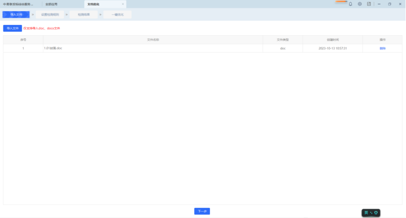 Word節(jié)點(diǎn)有【導(dǎo)入文檔】、【導(dǎo)出文檔】、【編輯文檔】、【導(dǎo)出模板】。切換節(jié)點(diǎn)后,節(jié)點(diǎn)名稱前灰色標(biāo)記會變?yōu)榫G色打鉤狀態(tài)。
