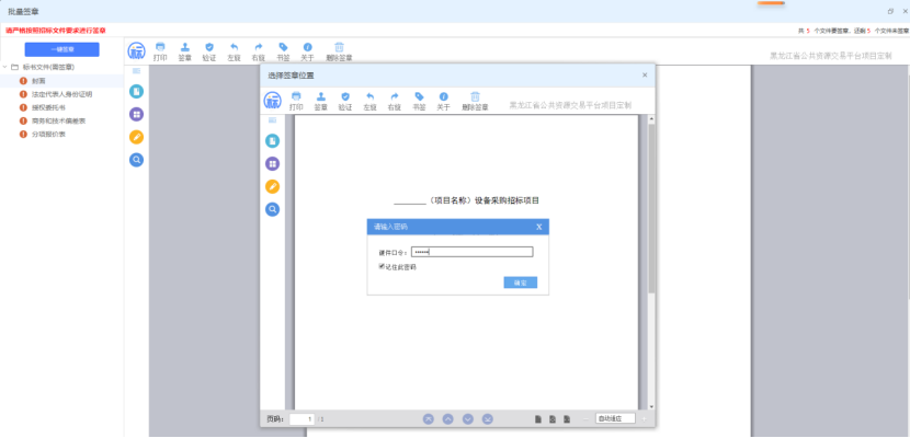 招標(biāo)文件中設(shè)置了簽章的節(jié)點(diǎn)在標(biāo)書簽章列會有簽章按鈕,點(diǎn)擊簽章按鈕,進(jìn)行單節(jié)點(diǎn)簽章。