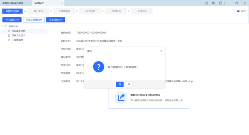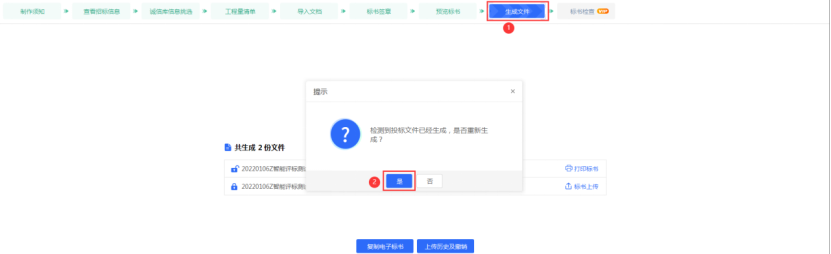 文件生成后,點(diǎn)擊“生成文件”,彈出的提示框點(diǎn)擊【是】,重復(fù)上述生成步驟,重新生成文件。