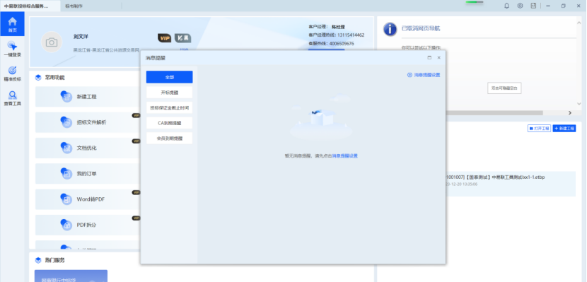 】,彈出消息提醒彈窗,展示開標(biāo)提醒、投標(biāo)保證金截止時(shí)間、CA到期提醒等內(nèi)容。