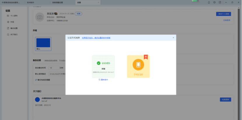 】,彈出認(rèn)證方式選擇彈窗,可以選擇CA鎖認(rèn)證或手機(jī)掃碼認(rèn)證。