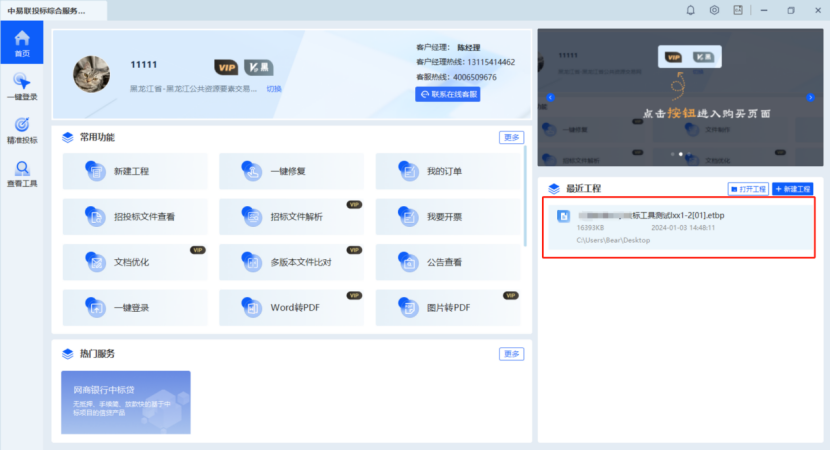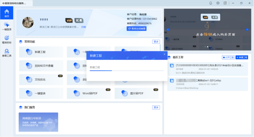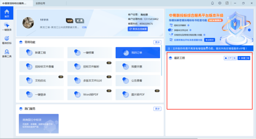 首頁展示用戶體系、常用功能、熱門服務(wù)、最近工程等模塊。