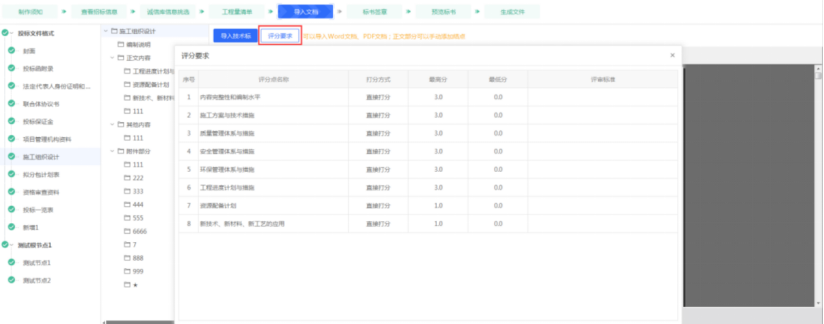 點(diǎn)擊【評分要求】,查看招標(biāo)文件中技術(shù)標(biāo)節(jié)點(diǎn)配置的評分點(diǎn)。