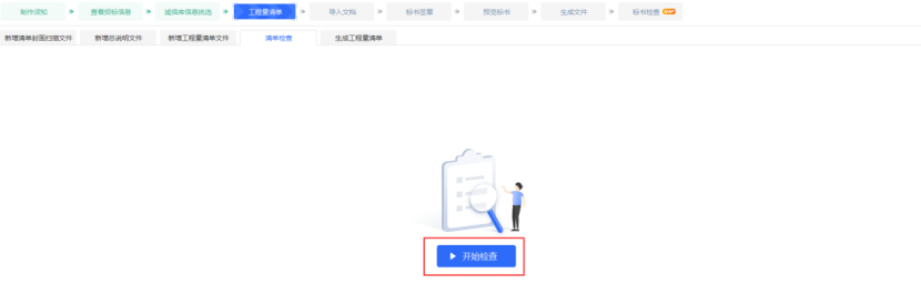 依次在前三個(gè)節(jié)點(diǎn)上傳對應(yīng)文件,點(diǎn)擊“清單檢查”節(jié)點(diǎn),點(diǎn)擊【開始檢查】,檢查完成后可以查看檢查結(jié)果。