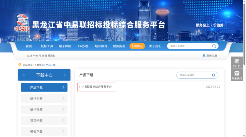 軟件采用向?qū)桨惭b界面,在瀏覽器中輸入軟件下載地址(復(fù)制到瀏覽器中點(diǎn)擊“中易聯(lián)投標(biāo)綜合服務(wù)平臺”即可下載):http://hljzhongyilian.com/xzzx/014001/list.html