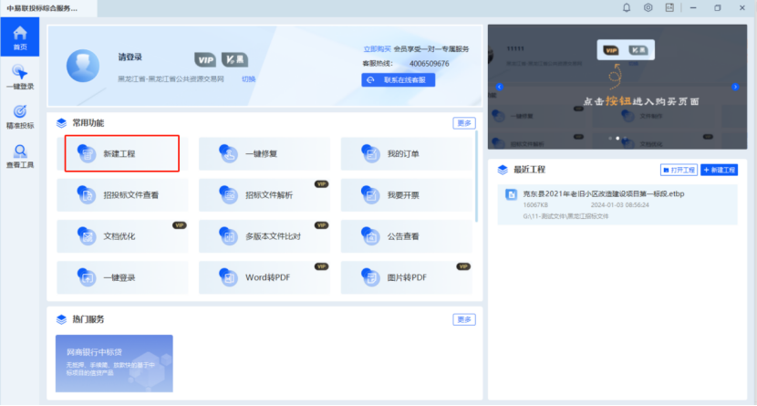 ,直接雙擊此圖標(biāo),進(jìn)入投標(biāo)文件制作軟件。或者從 Windows 的“開始 >所有程序 >中易聯(lián)投標(biāo)文件制作工具”啟動程序。