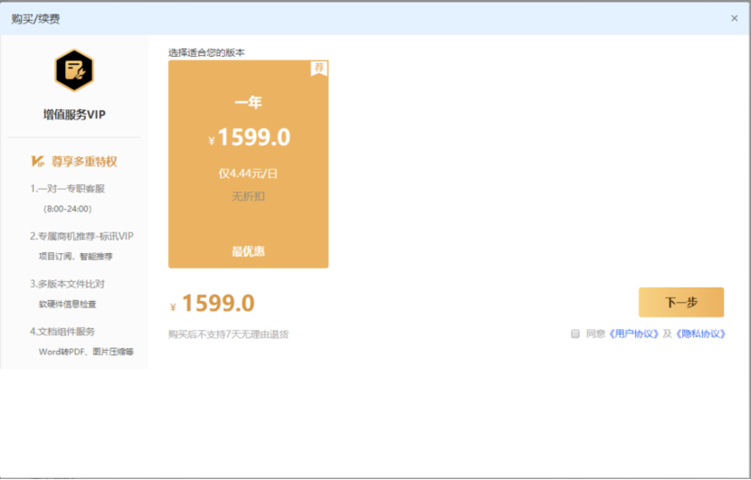 若選擇增值服務(wù)VIP,跳轉(zhuǎn)至購買/續(xù)費(fèi)頁面。