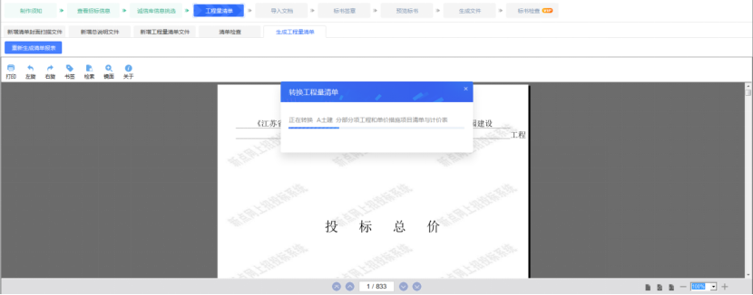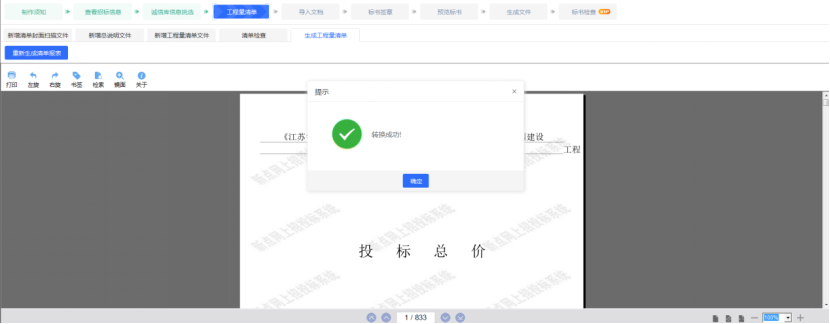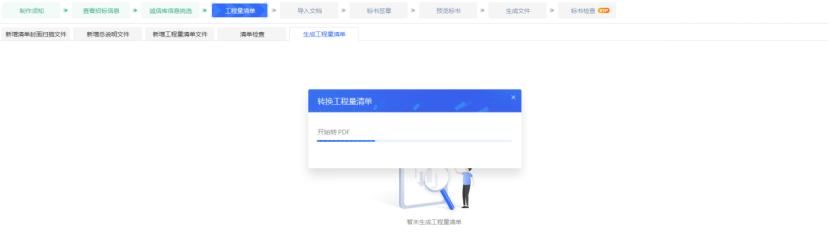 依次在前三個(gè)節(jié)點(diǎn)上傳對應(yīng)文件,點(diǎn)擊【生成工程量清單】節(jié)點(diǎn),字段轉(zhuǎn)換清單PDF。