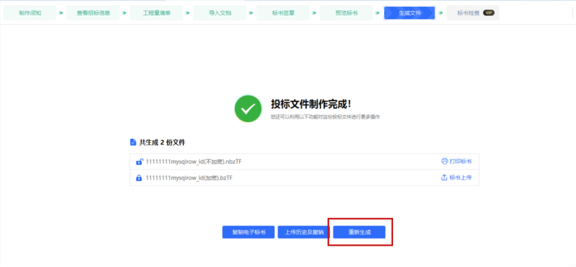 文件生成后,點(diǎn)擊“重新生成”按鈕,可再次重新生成文件。
