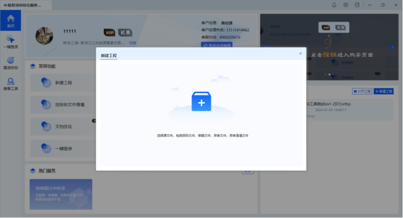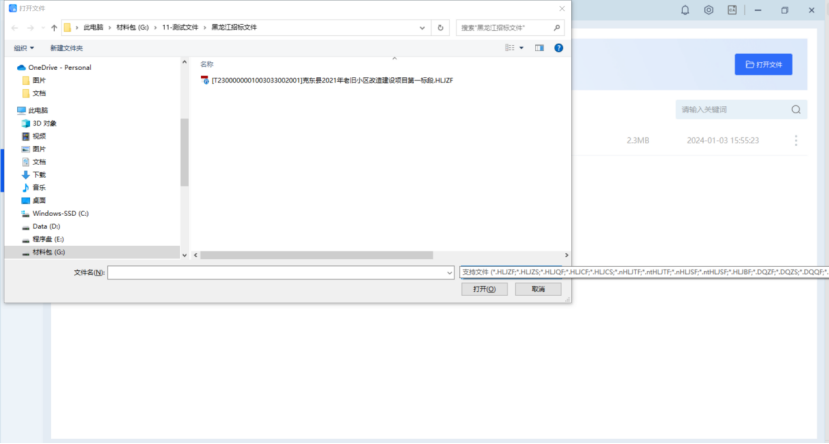 點(diǎn)擊【新建工程】,彈出新建工程的彈窗。點(diǎn)擊“招標(biāo)/答疑/資審文件”,選擇招標(biāo)文件或者答疑文件,點(diǎn)擊【打開】。