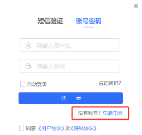 若當(dāng)前單位無賬號,選擇登錄頁面的賬號密碼方式,點(diǎn)擊【立即注冊】按鈕,根據(jù)注冊要求填寫信息,完成注冊。
