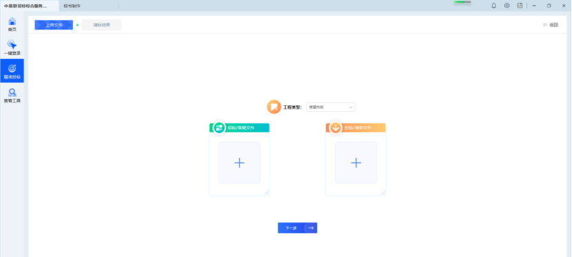 依次上傳招標(biāo)清單(或者招標(biāo)/答疑文件),投標(biāo)清單(或者投標(biāo)文件),控制價(jià)清單(或者控制價(jià)文件),點(diǎn)擊【下一步】,開始清標(biāo)。